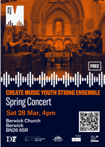 Create Music's Youth String Ensemble is delighted to host an intimate concert in historic Berwick Church, nestled in the South Downs between Lewes and Polegate. Dedicated to St Michael and All Angels, the Grade I listed church dates back to the 12th century, with visitors regularly coming to see the famous Bloomsbury paintings by the artists Duncan Grant, Vanessa Bell and Quentin Bell,